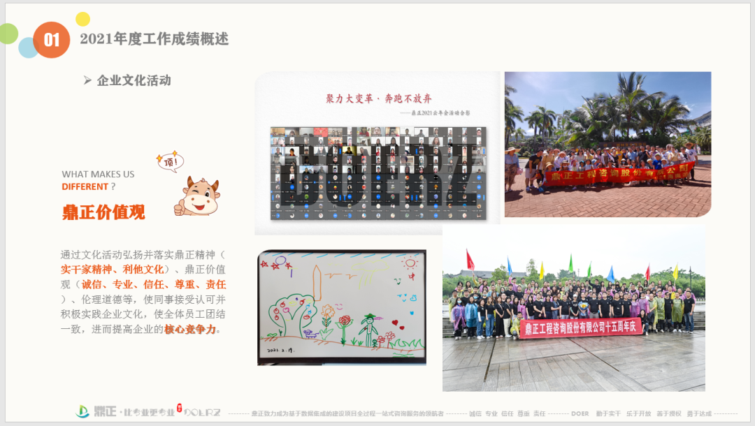 本次年終總結會議既是一次回顧過往的總結大會,也是一次展望未來、再創(chuàng)佳績的動員大會。感謝全體鼎正人在2021年度的積極付出與努力,望大家繼續(xù)加強自身學習,提高工作效率,端正工作態(tài)度,提升服務質量,全體同仁齊心協力乘勢而上,凝聚力量共筑未來,相信明天會更好!