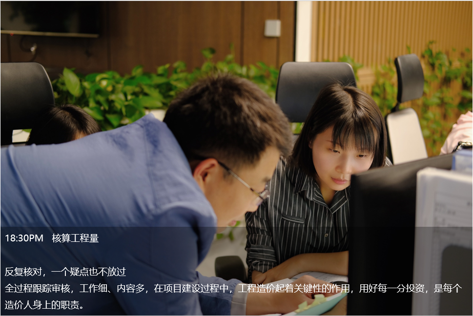 晚上7點,造價部同事還在計算工程量。內(nèi)墻工程量是不是漏算了?混凝土類型是不是用錯了?他們邊檢查邊計算,用嚴(yán)謹(jǐn)?shù)墓ぷ鲬B(tài)度,扎實的專業(yè)技能,細致的服務(wù)理念,一次又一次贏得客戶的信賴。