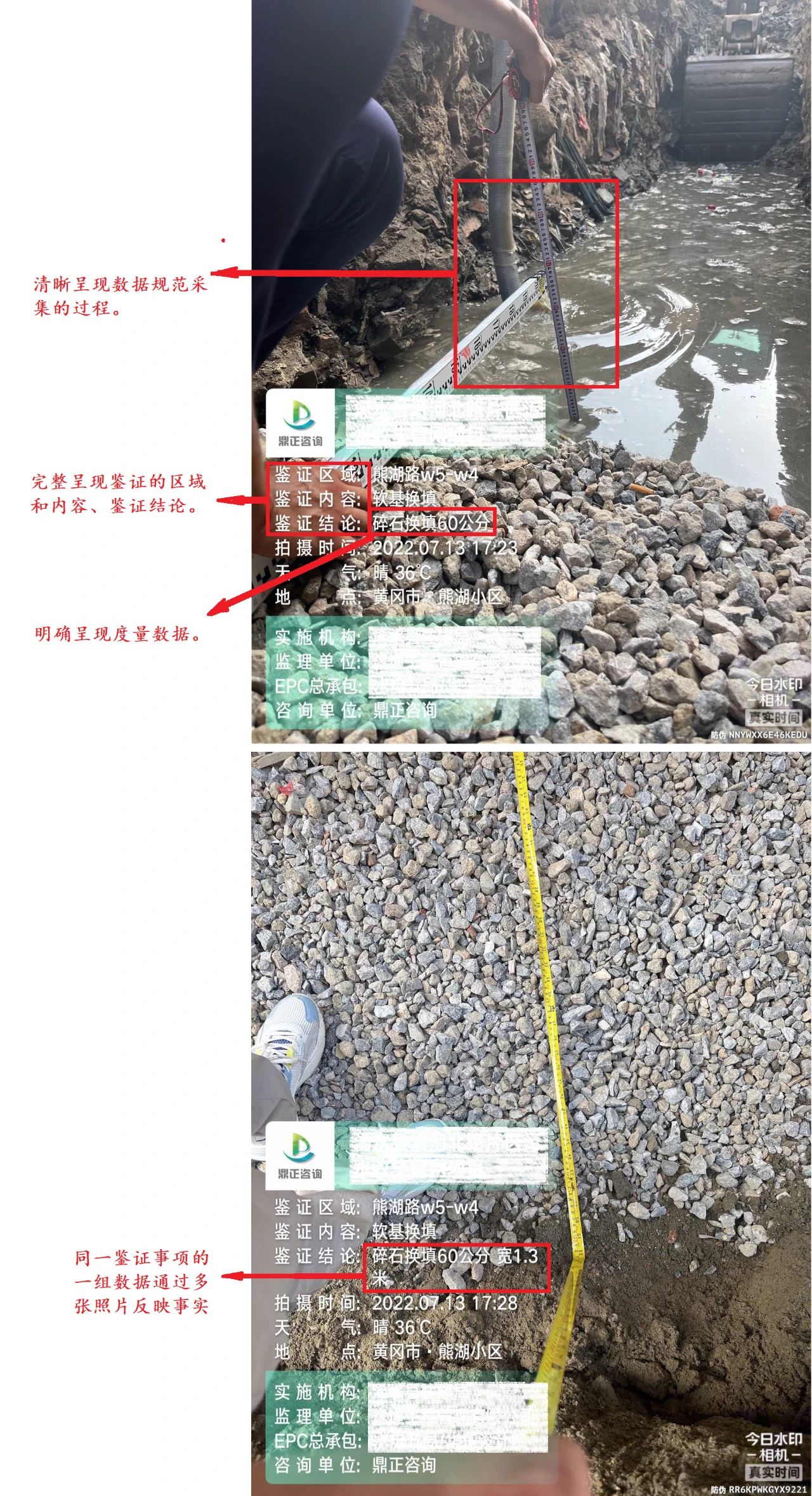 現(xiàn)場(chǎng)鑒證照片是再現(xiàn)工程現(xiàn)場(chǎng)施工質(zhì)量、安全、隱蔽工程等實(shí)際施工情況的重要證據(jù),是各項(xiàng)目施工階段工程監(jiān)理、全過程造價(jià)咨詢、結(jié)算審核以及解決工程糾紛提供有價(jià)值的支撐材料,是筑好每一個(gè)項(xiàng)目,夯實(shí)鼎正服務(wù)品質(zhì)的基石。