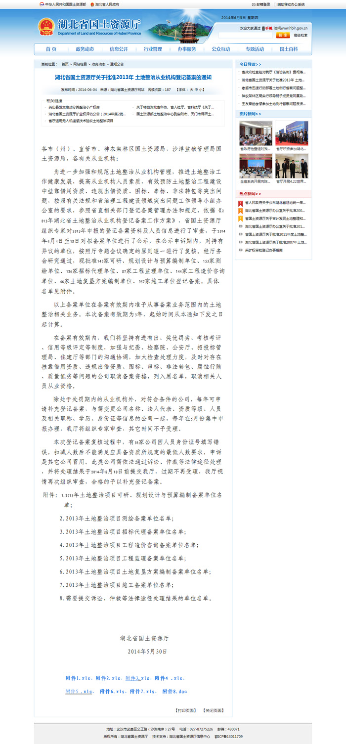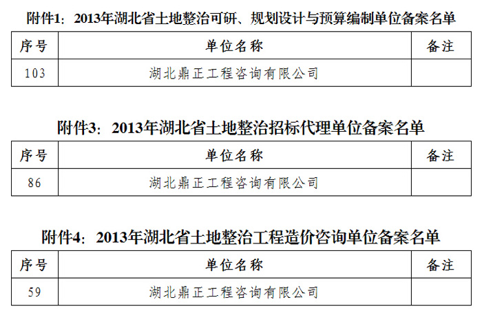 祝賀我司所有相關(guān)業(yè)務(wù)均通過湖北省國(guó)土資源廳2013土整從業(yè)機(jī)構(gòu)備案