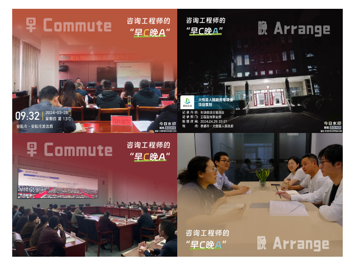 早:晨光熹微,咨詢工程師,以飽滿的激情向項(xiàng)目地出發(fā)。超長期特別國債項(xiàng)目研究團(tuán)隊(duì),Commute(通勤)往返于客戶和公司兩地之間,為多地政府部門及企事業(yè)單位,做項(xiàng)目謀劃、診斷、咨詢。