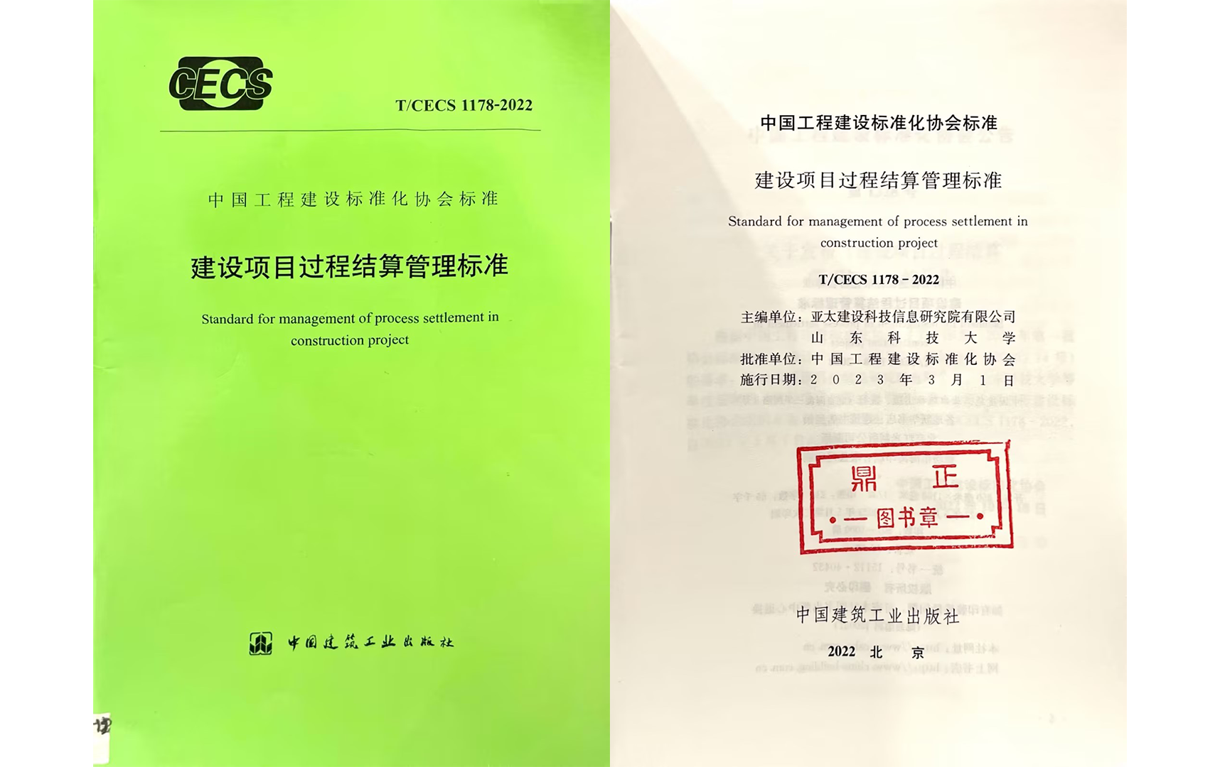 鼎正參與編制的《建設(shè)項(xiàng)目過程結(jié)算管理標(biāo)準(zhǔn)》(T/CECS 1178-2022)通過專業(yè)組和評(píng)審委員會(huì)的兩級(jí)評(píng)審,從700余個(gè)報(bào)送項(xiàng)目中脫穎而出,榮獲2024年度華夏建設(shè)科學(xué)技術(shù)獎(jiǎng)三等獎(jiǎng)。