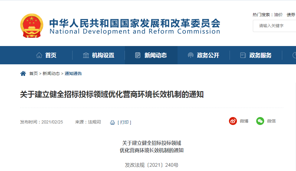 關(guān)于建立健全招標(biāo)投標(biāo)領(lǐng)域優(yōu)化營商環(huán)境長效機制的通知