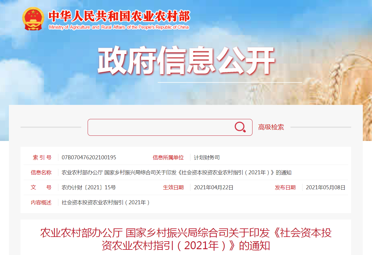 社會(huì)資本投資農(nóng)業(yè)農(nóng)村指引(2021年)