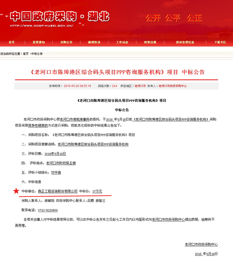 【經(jīng)營成果】我司中標(biāo)《老河口市陳埠港區(qū)綜合碼頭項(xiàng)目PPP咨詢服務(wù)機(jī)構(gòu)》項(xiàng)目